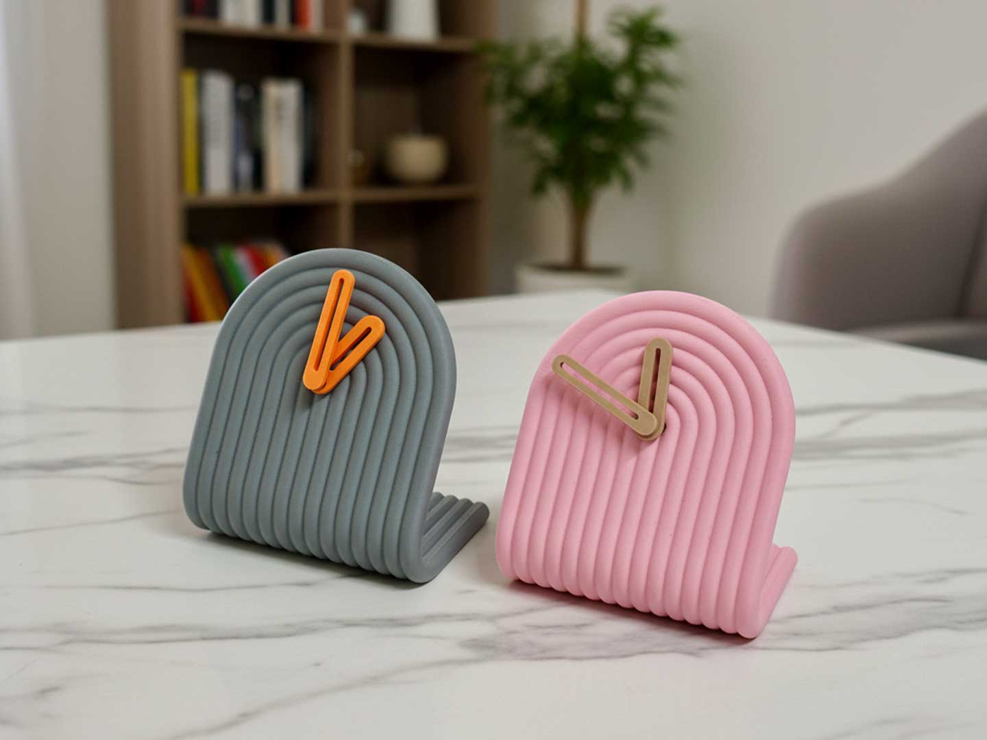 Inspired by the calm of dusk, Senja is a sculptural desk clock that blends functionality with art. Featuring a warm terracotta-toned body and soft, wave-like ridges, its form evokes a sense of stillness and simplicity. The minute and hour hands were thoughtfully selected in a light neutral tone to complement the main colour.