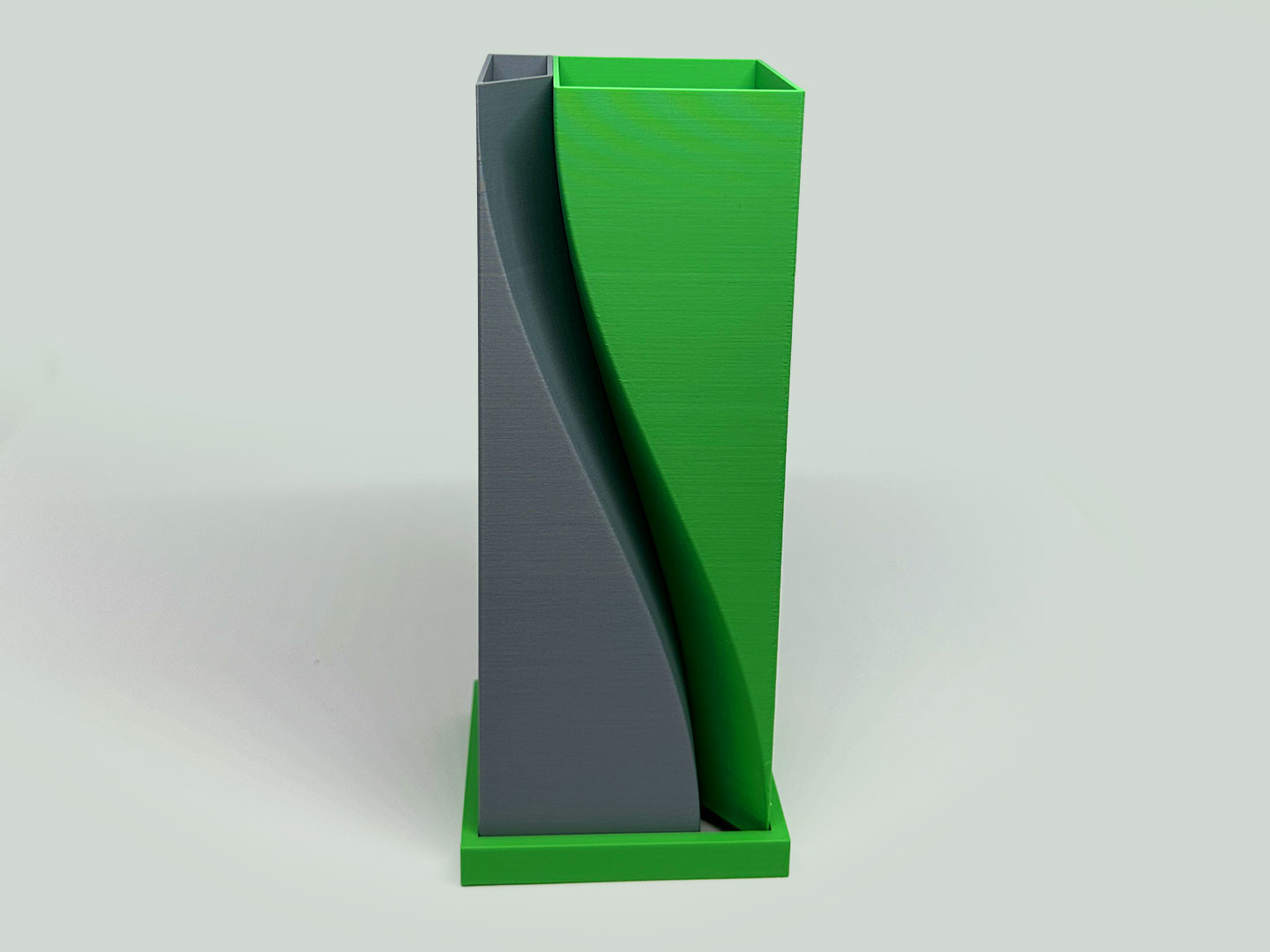 Its gentle sweeping curve adds depth and movement to the geometric silhouette, making it as much a decorative object as it is a functional vessel.